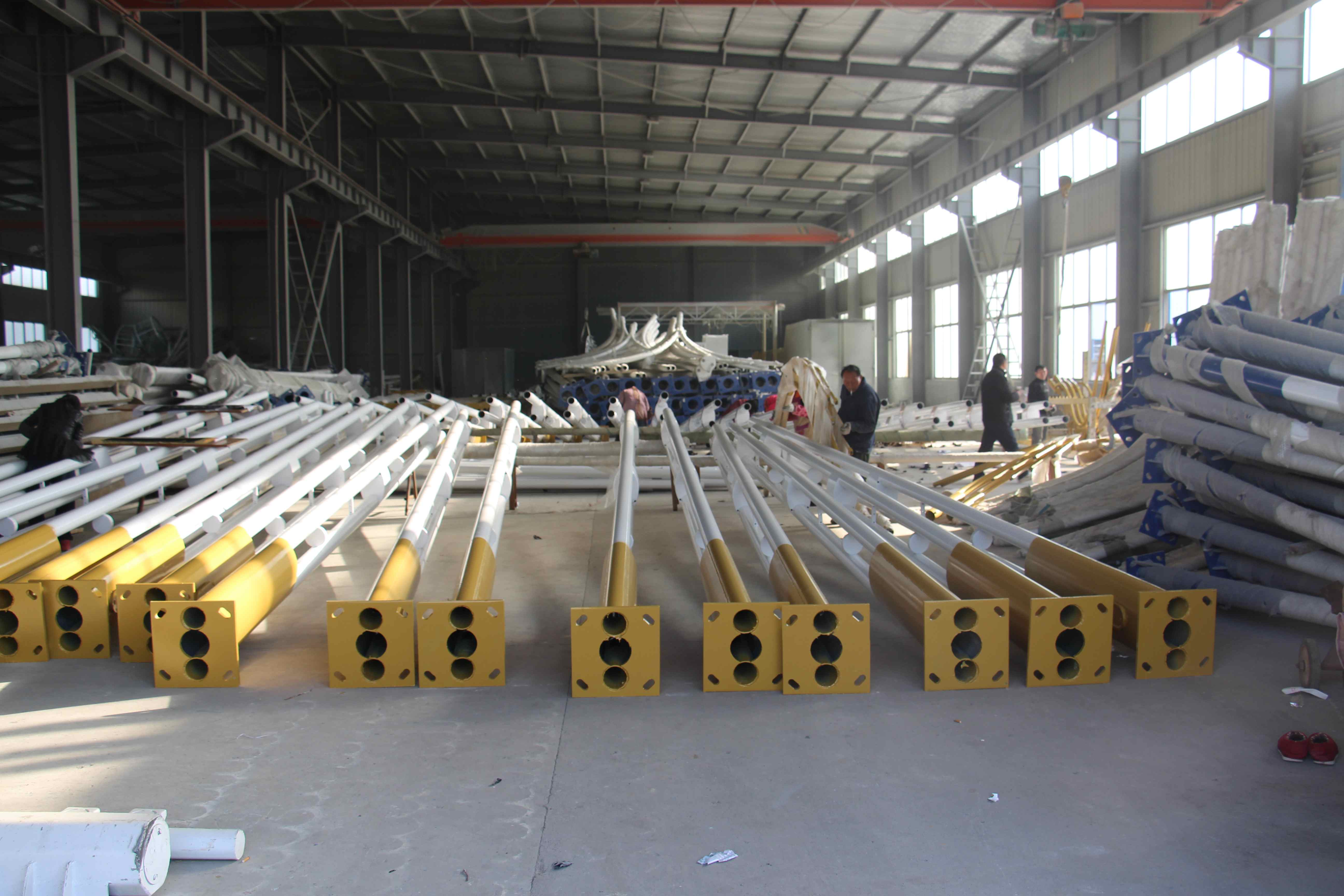 高郵市捷通交通器材有限公司位于揚州北郊送橋開發(fā)區(qū)。公司占面積20000平方米,建筑面積12000平方米。 二千年以來,以鋼代木和水泥桿已風行世界,我國各地也紛紛建立錐桿廠,以漂亮的錐桿代替了過去的和水泥桿,裝點了一條條的公路和街道,美化了環(huán)境,照亮了人間成為各地新建和改造道路的不可缺少的配套設施。路燈的千變?nèi)f化,已成為各地路燈生產(chǎn)商和建設者的追求。 但現(xiàn)有的路燈,均在燈頭及底座上變化;燈頭款式雖多,但在燈桿上均無變化,只有光身錐桿和光身直桿,十分單一。以我公司多年對管材深加工設備的認識,加上全公司員工的不懈努力,成功設計制造了花式錐桿的機械設備,生產(chǎn)出竹節(jié)、六花